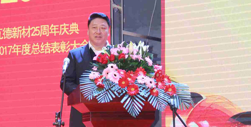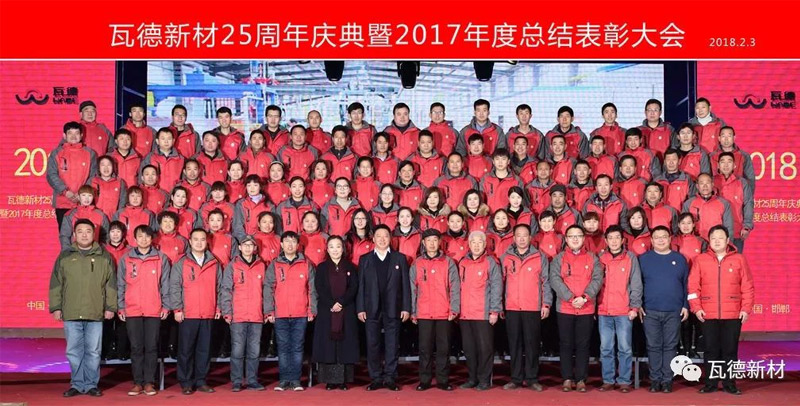 2月3日上午瓦德新材25周年慶典暨2017年度總結(jié)表彰大會(huì)于河北邯鄲五谷豐登大酒店隆重召開。此次會(huì)議的主題為“感恩 共享 發(fā)展”。集團(tuán)董事長(zhǎng)謝富強(qiáng),總經(jīng)理常金秀,中高層領(lǐng)導(dǎo)干部,武漢工廠、邯鄲工廠、安徽工廠職工代表,社會(huì)各界友人等近300人歡聚一堂, 共同分享收獲的喜悅,迎接全新的挑戰(zhàn)。